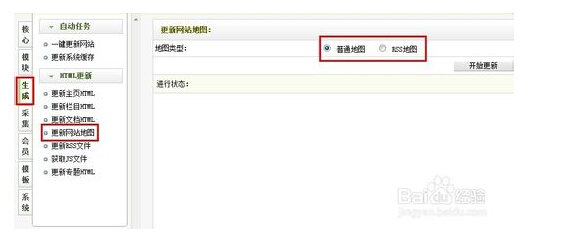 4.然后,进入织梦后,点击生成,地图和RRS生成即可。