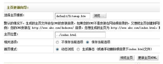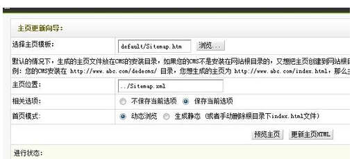 5.选择主页模板下面会有一个主页位置,把主页位置的内容../index.html改成../Sitemap.xml,然后选择更新主页html(注意这里需要选择生成静态页)